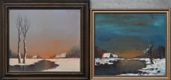 ‘Herfstlandschappen’, olieverf op paneel. Twee schilderijen, getekend.