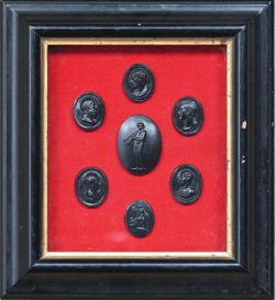 Een lijst met portretten in relief. Naar de oudheid.