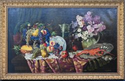 ‘Stilleven met kip’, olieverf op doek. Getekend en gedateerd ‘69.