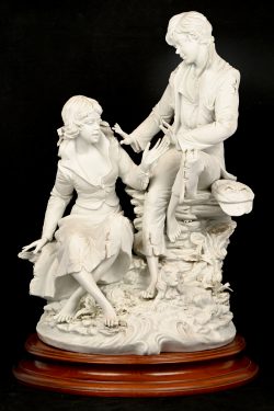 “De visser en zijn geliefde”, een groep van Capodimonte porselein.