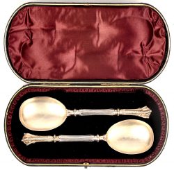 Twee zilveren lepels in hun originele etui met Engelse keuren, Birmingham, George Unite & Sons, 1890.n