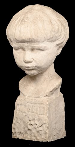 ‘Kinderhoofd’, een plaasteren beeldje. Getekend; Belpair.