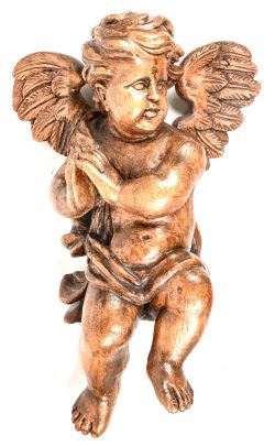 Een houten gesculpteerde putto. Neobarok, laat 19e eeuw.