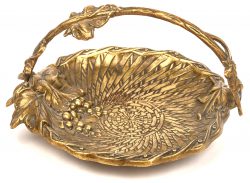 Een schaaltje met oor in imitatie vlechtwerk van gegoten messing. Begin XXste eeuw.