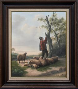 ‘Schapen met lammeren’, olieverf op paneel. Reproductie naar de 19e eeuw, niet getekend.