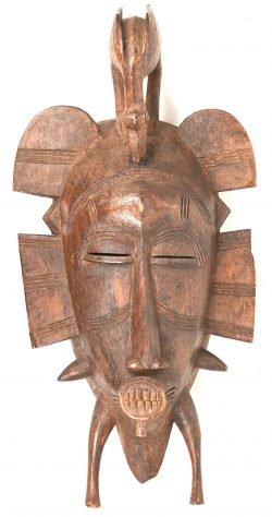 Een gesculpteerd houten Afrikaans masker. Senufo stam.