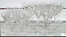 Een lot van 12 kleine en 10 grote geslepen glazen, van kleurloos VSL kristal. Niet gemerkt.