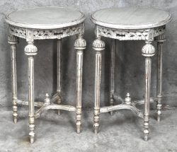 Een set van 2 bijzettafeltjes in Chinese stijl, hout en kunststof.