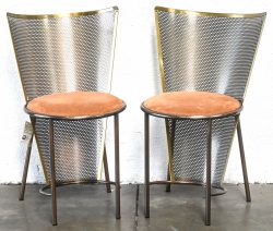 Een paar vintage rotan stoelen van het ECC tennistoernooi, Antwerpen 1982. Op de rug het opschrift; Gasparucci Italo.