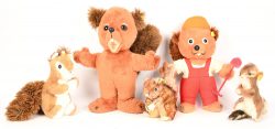 Vijf pluchen knuffels waarvan twee zebra’s en drie giraffen, op één giraf na allen gemerkt Steiff.