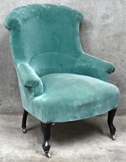 Een crapaud zeteltje met groen velours bekleed. Vroeg 20ste eeuws.