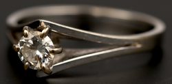Een 18 kt witgouden ring bezet met een briljant van +- 0,25 ct.