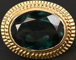 Een set van 13 kristallen wijnglazen met een groene kelk en 6 kleurloze borreltjes. Gegraveerd met een decor van bloemen en vogels.