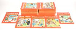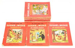 Suske en Wiske. Rode reeks, ongekleurd. Nummers 4 (ed. 1960), 6 & 8 (ed. 1958), 11 (ed. 1961), 12 (1e uitgave), 16 (ed. 1954), 18 (ed. 1962), 20 (ed. 1959), 21 (ed. 1962), 22 (ed. 1960), 23 (ed. 1962), 24 (ed. 1960), 25 (ed. 1962), 27 (ed. 1960), 28 (ed. 1959), 29 (ed. 1960), 30 (ed. 1961), 31 (ed. 1962), 32 (ed. 1959), 34 (ed. 1958). 20 stuks, zeer gelezen tot redelijke staat.
