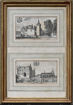 Twee antieke gravures: ‘Castellum de Schilde en ‘Castellum de Wyneghem’, door J. Lenoy, 1725.