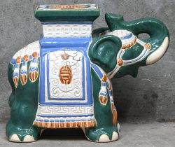 Een meerkleurig keramische olifant/piëdestal, Chinese origine.