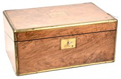 Een eikenhouten sigaren/sigaretten kistje met koperen beslag en sigarenknipper. 19e eeuws.
