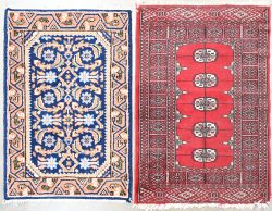 Een lot van twee handgeknoopte Oosterse tapijtjes.