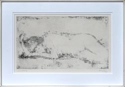 ‘Vrouw met paarse baret’, een ingekleurde ets/droge naald. Gesigneerd en gedateerd. Nr. 22 uit een oplage van 30 exemplaren.