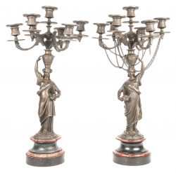 Een bronzen kandelaar in Empire-stijl voor 3 kaarsen.