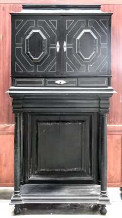 Een Chinees kastje met 2 deuren en figuren in het decor.