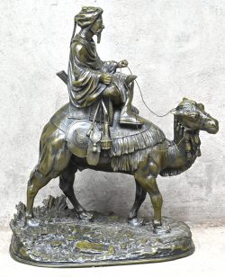 Een lot van twee Indische bronzen beeldjes. Een ruiter te paard en een danseres gezeten op een olifant.