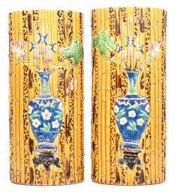 Een lot van vijf vazen en bloempothouders van geglazuurd en gepatinneerd aardewerk. Uit de collectie; House Of Porters.