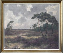 ‘Heidezicht’. Olieverf op doek. Onleesbaar getekend.