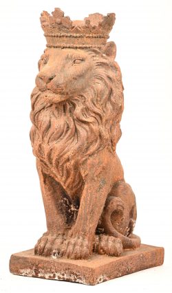 ‘Gekroonde leeuw, een gietijzeren beeldje met mooie roestpatina. Niet gemerkt.