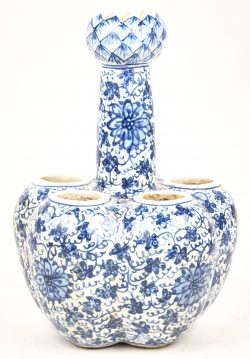 Een tulpenvaas van Chinees blauw en wit porselein. Onderaan gemerkt.