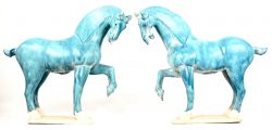 Een Victoriaans metalen inktstel met als centraal ornament een paard in draf. Met de originele glazen inktpotjes.