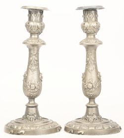 #156Een paar romantische kandelaars, tin-look.