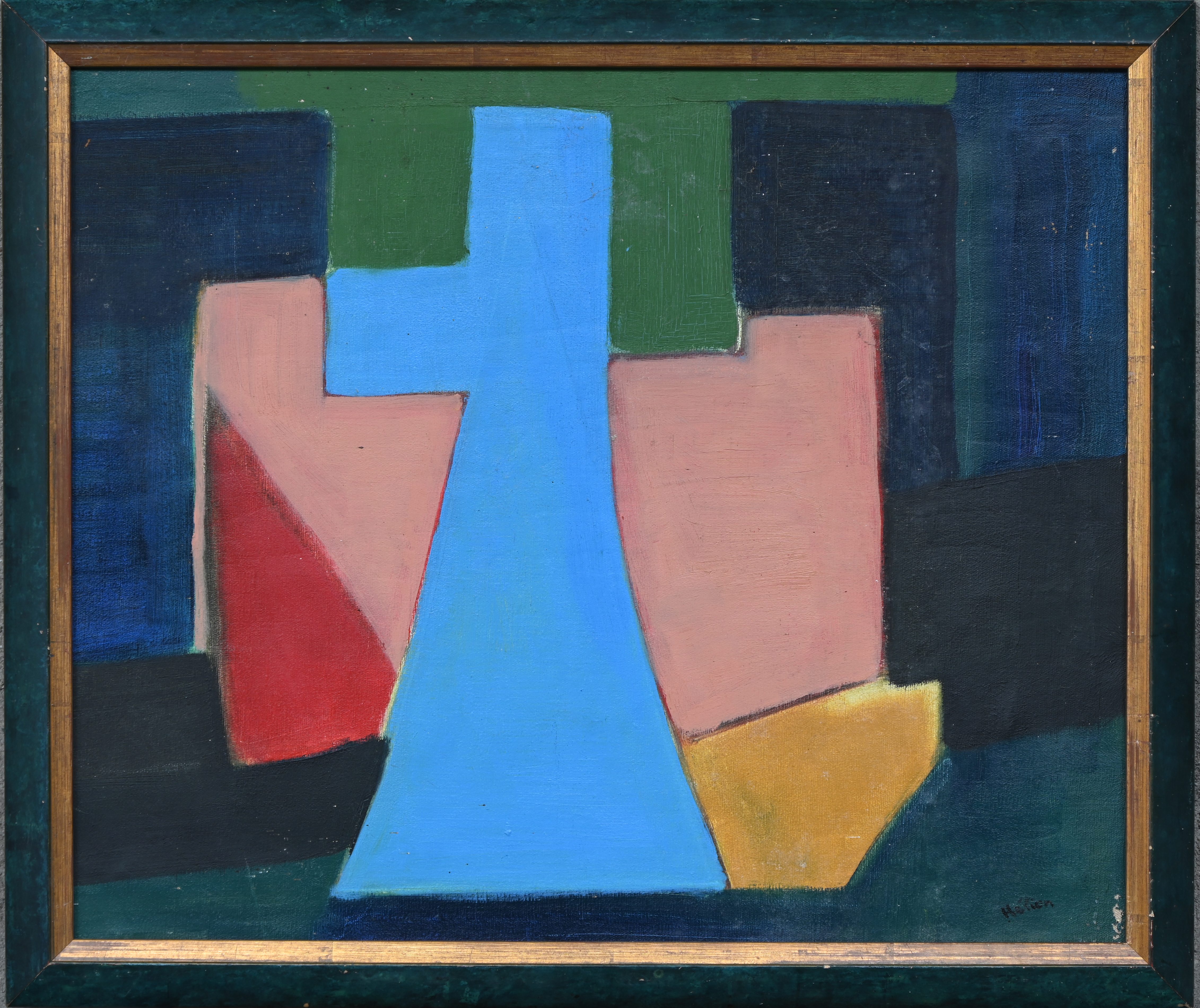 ‘Abstracte compositie’, olieverf op gemaroufleerd doek. Getekend Hélion.