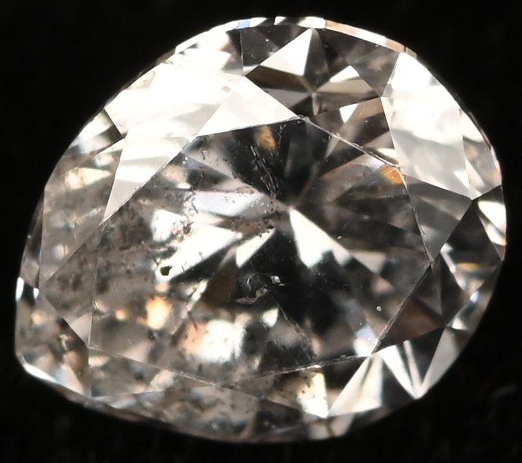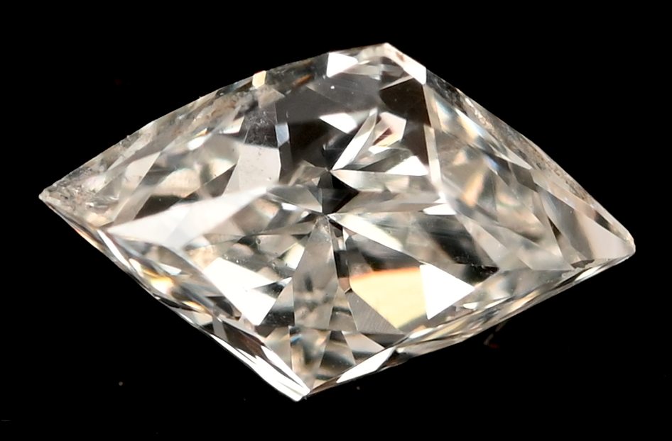 Eight different cuts of natural diamonds including: Pear cut H F P2. 0.20 ct. Marquise cut H P2. 0.11 ct. Round cut G P1. 0.28 ct. Baguette cut. I P2. 0.16 ct. Diamond cut H VS2. 0.16 ct. Radiant cut D SI. 0.15 ct. Emerald cut twice. G SI. 0.17 ct. and F VS1. 0.25 ct. Princess cut K SI2. 0.19 ct.