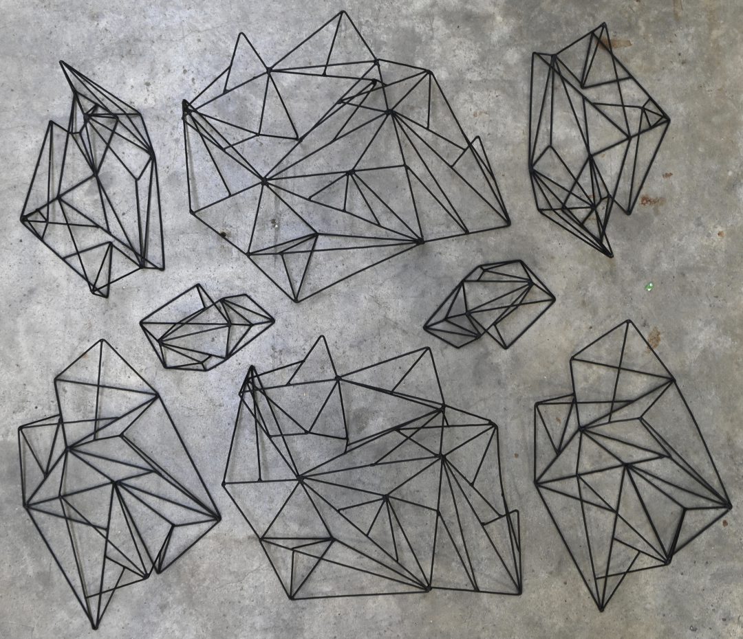 #325Een set van twee houten appliques van “House of Porters”, witgekalkt in de vorm van fakkels.