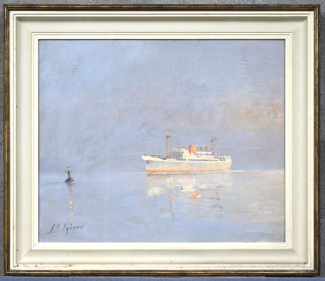 #269Leo JordaensPeriod: 1944-2000‘Marine’, olieverf op paneel. Getekend L. Jordaens.