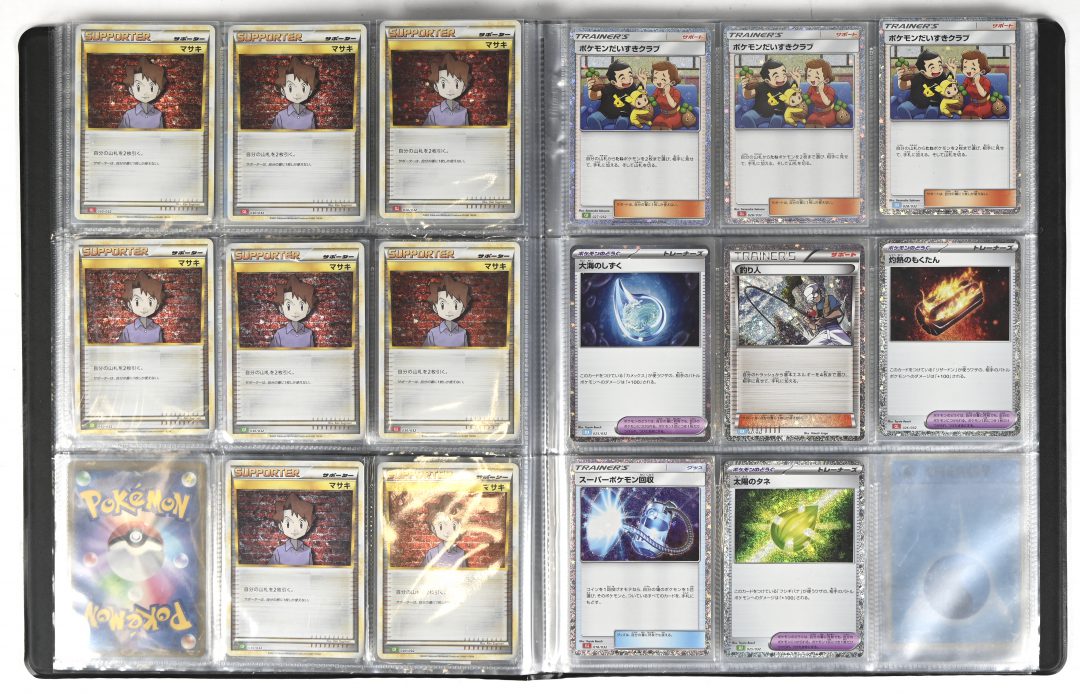 Assortiment Japanse Holofoil Support & Trainer kaarten: Bill x 8 (CLF, CLL) Pokemon Fan Club x3 (CLF, CLL, CLK) Drops in the Ocean (CLK) Fisherman (CLK) Scorching Charcoal (CLL) Super Scoop Up (CLL) Sun Seed (CLF)