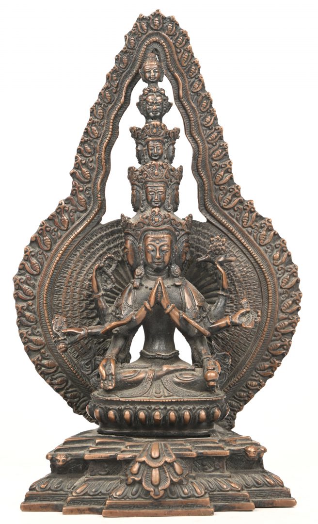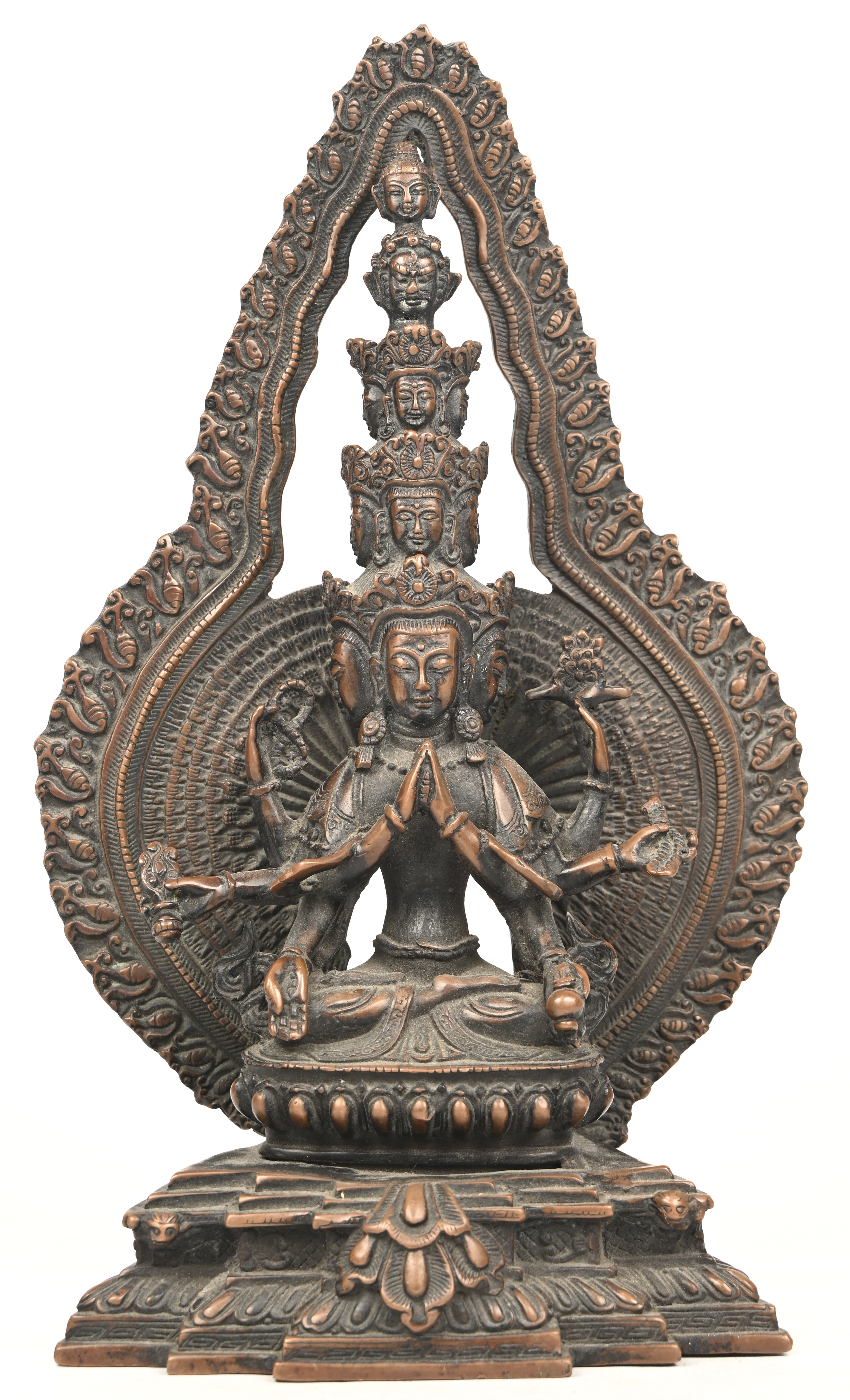“Jezus Christus”, een bronzen Christus aan een koperen kruis, vroeg 20ste eeuws, niet gesigneerd.