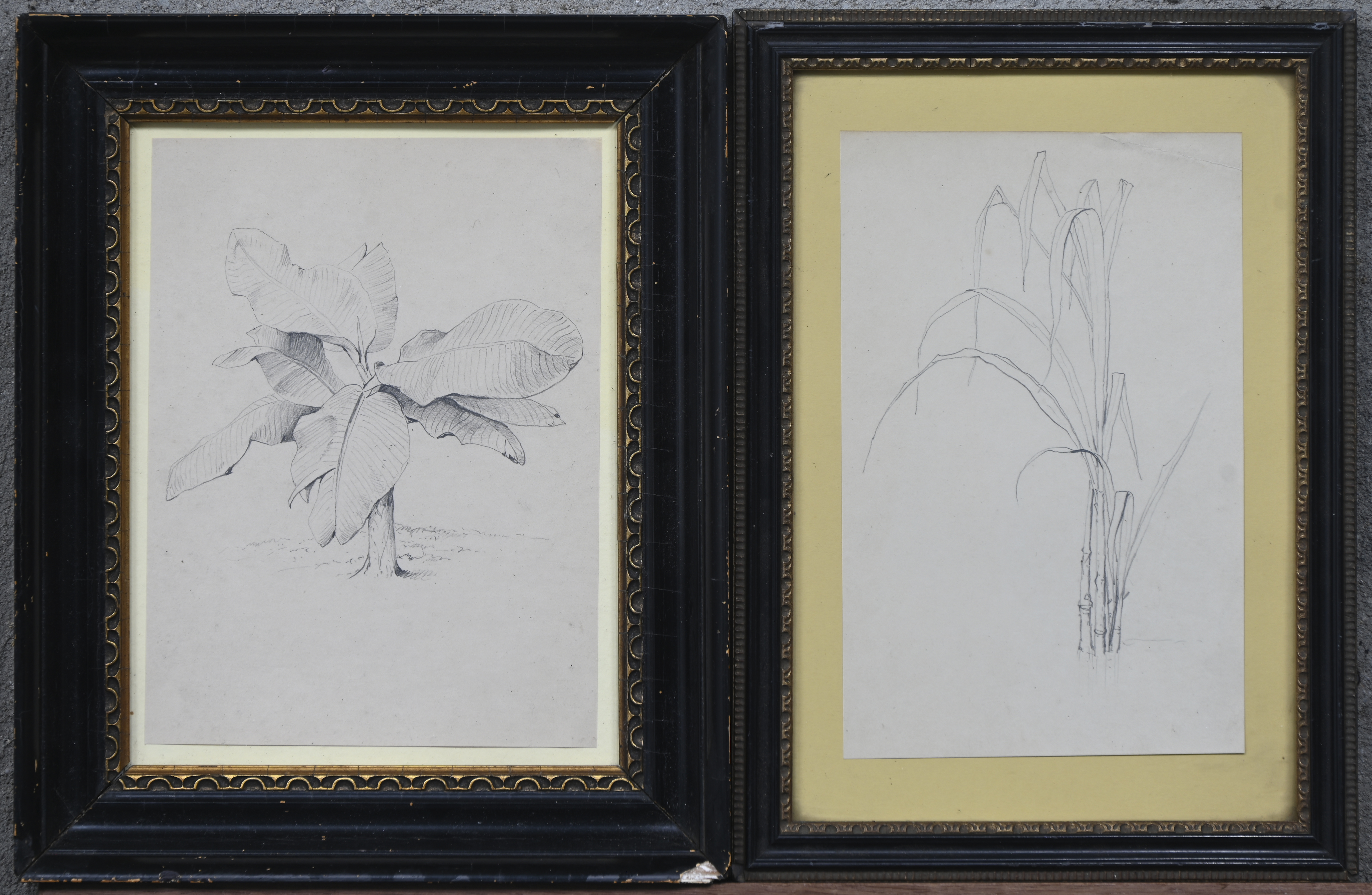 ‘Banana plant’ and ‘sugarcane’, two pencil drawings on paper. Attributed to Eugène Verboeckhoven (1798/99-1881). With provenance listed by ABACA SRL (Association Brussels Arts and Culture Auctions).