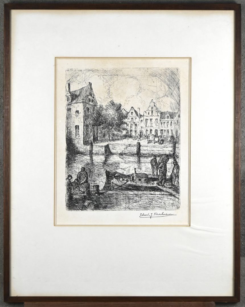 #178Romain MalflietPeriod: 1910 - 2006‘Rijnvissers, kanaal Willebroek’, een monochrome ets. Getekend; Rom. Malfliet. Nr. 23 uit een oplage van 50 exemplaren.