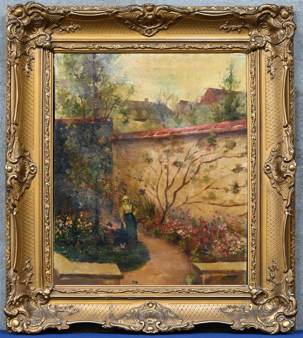 ‘Beguines in the Flower Garden’, oil on canvas. Signed lower right, Antwerp 1878.