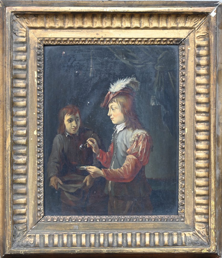 ‘Portrait of a child, playing with fire’, oil on canvas. Signed J. De Bleye.No longer availableDim. 61/50 cmEstimate: € 180 / 250 -
