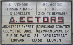 #104“Bouwgrond te koop”, een oud houten bord beschilderd door Jos.