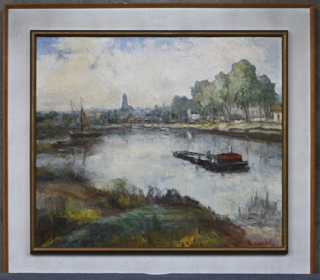 #364Richard De Bruyn‘Zicht in de Westhoek’, post impressionisme. Olieverf op doek, getekend met monogram B. R. en een ster.
