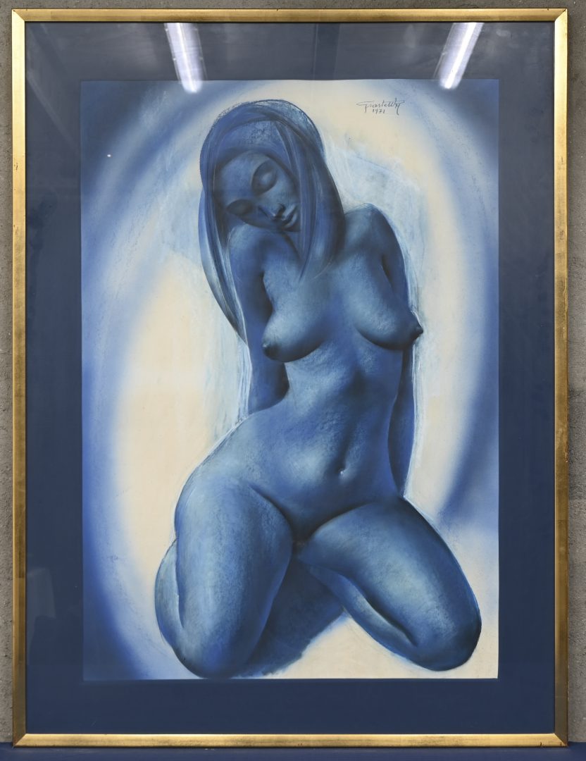 ‘Blauw naakt’, pastel op papier. Getekend Graste Wim, 1971.