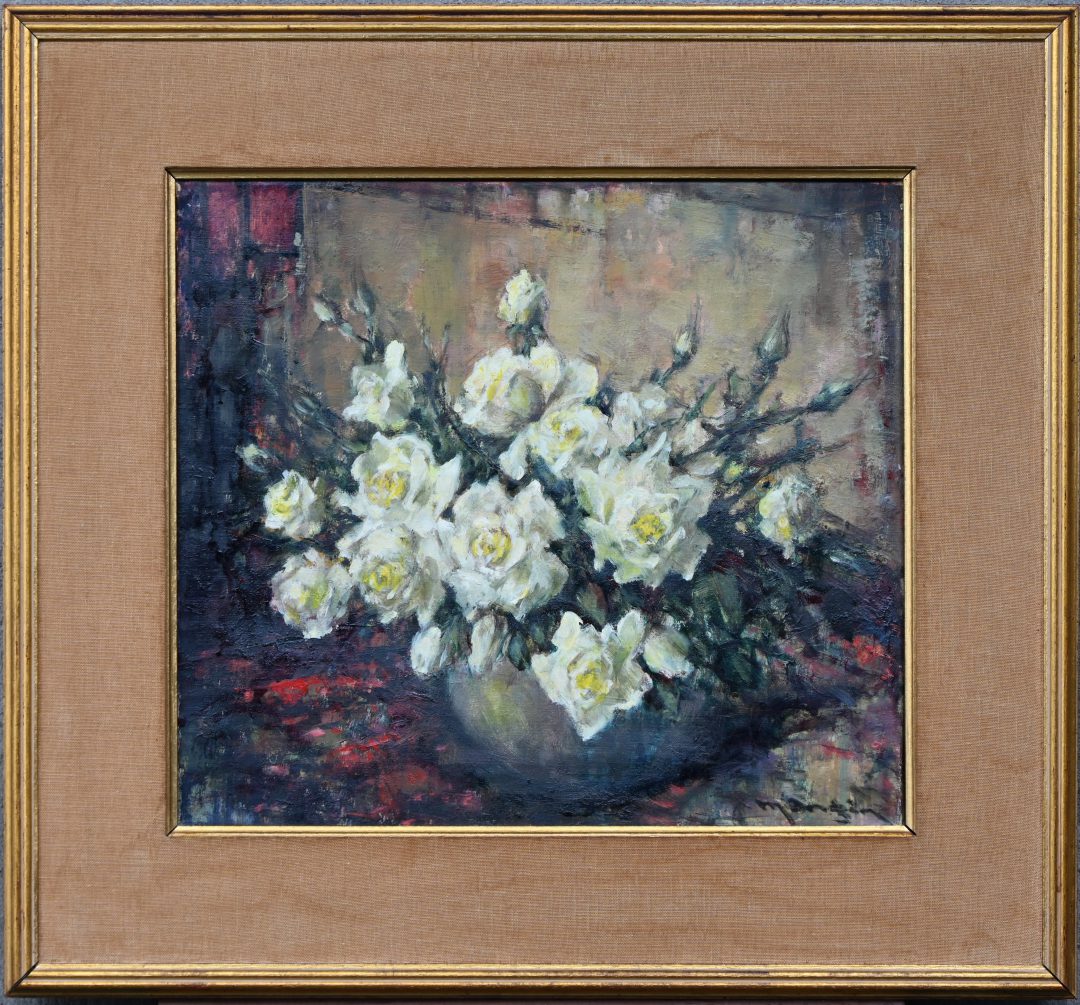 #84Charles ManginPeriod: Antwerpen 1892-1977“Stilleven met kan en ajuinen”, een schilderij, olieverf op doek, gesigneerd.