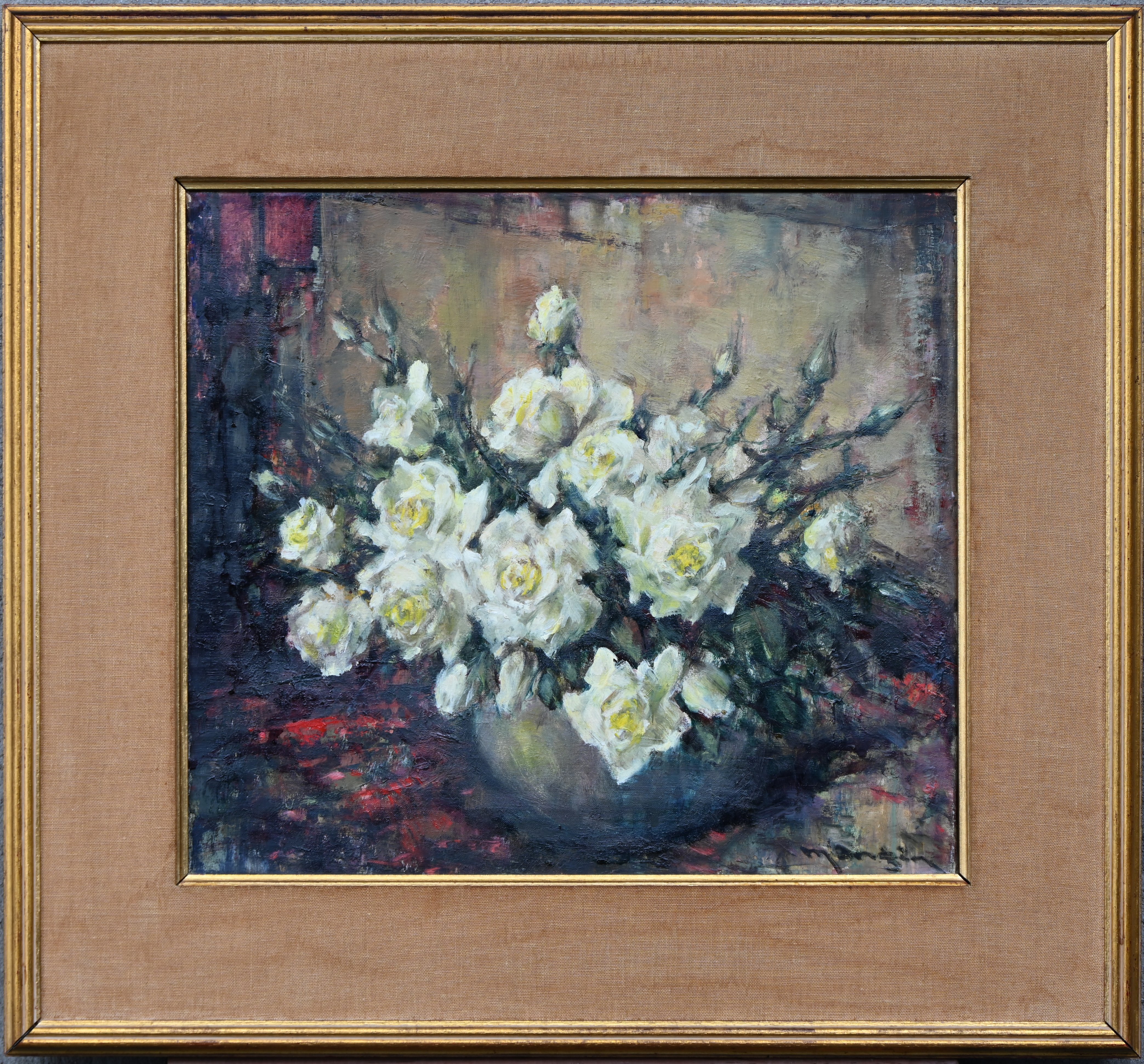 ‘Flower vase’, oil on canvas. A 19th-century piece, signed. With damage to the canvas. -