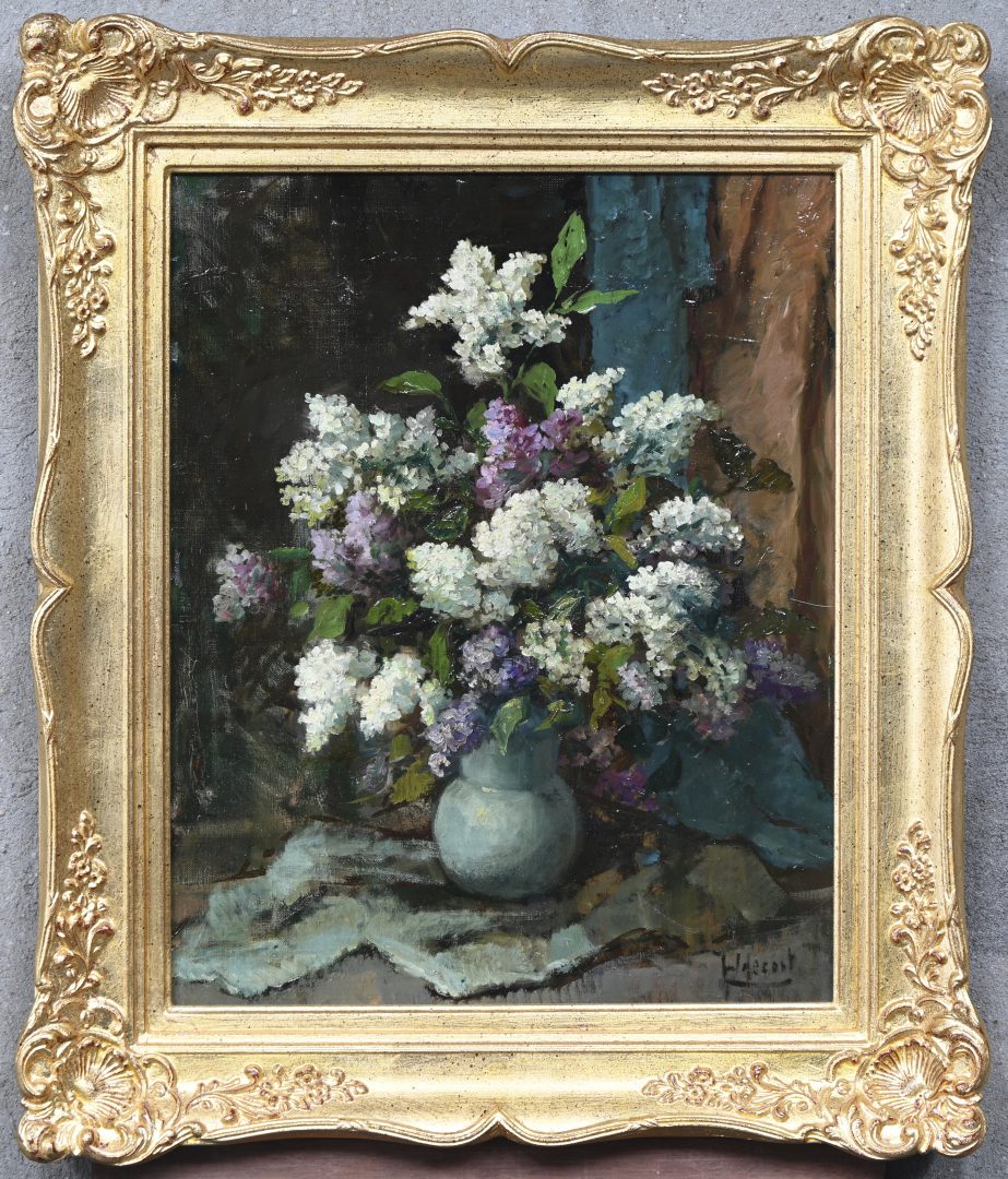 #542Lode SebregtsPeriod: 1906 - 2002‘De taart’, olieverf op doek. Een post-impressionistisch werk getekend L. Sebregts. Sebregts genoot zijn opleiding aan de Academie van Antwerpen en het NHISKA, bij Isidoor Opsomer en Albert Saverys.