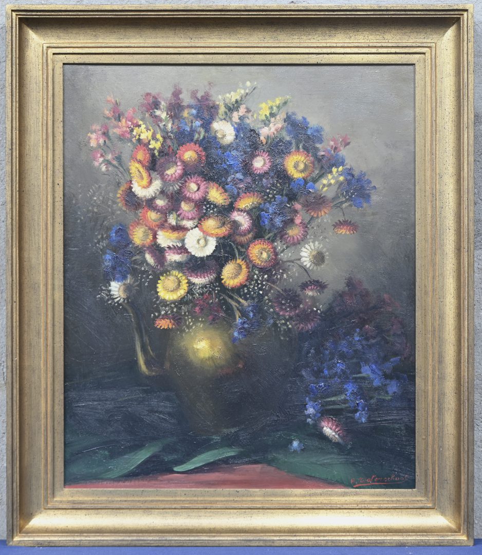 ‘Bloemenvaas’, olieverf op doek. Getekend A. Waterschoot.