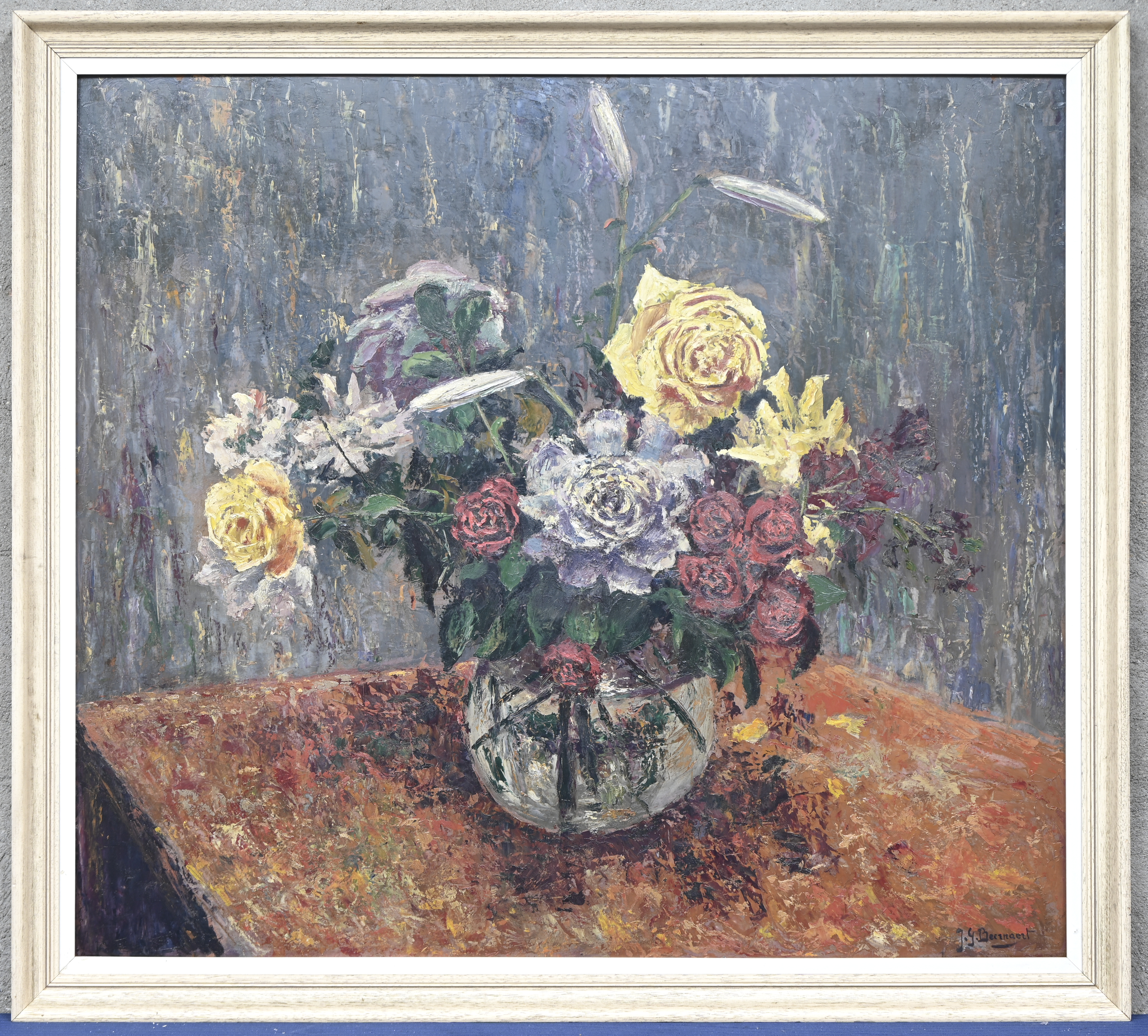 “Flower Vase”, oil on panel. Signed J.G. Beernaert.